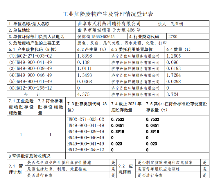 曲 阜 市 天 利 药 用 辅 料 有 限 公 司