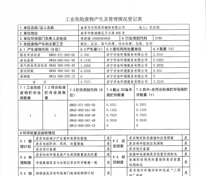 曲 阜 市 天 利 药 用 辅 料 有 限 公 司